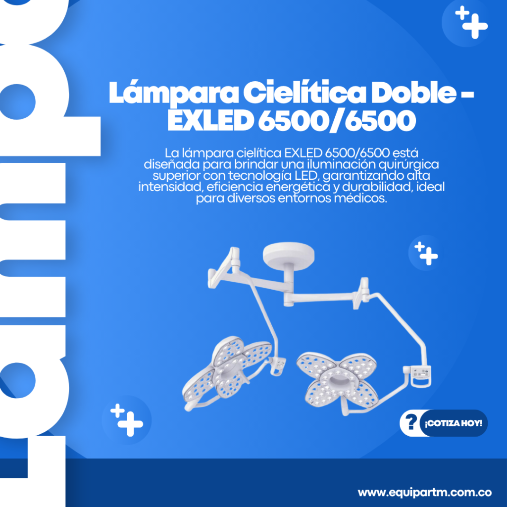 La lámpara cielítica EXLED 6500/6500 está diseñada para brindar una iluminación quirúrgica superior con tecnología LED, garantizando alta intensidad, eficiencia energética y durabilidad, ideal para diversos entornos médicos.