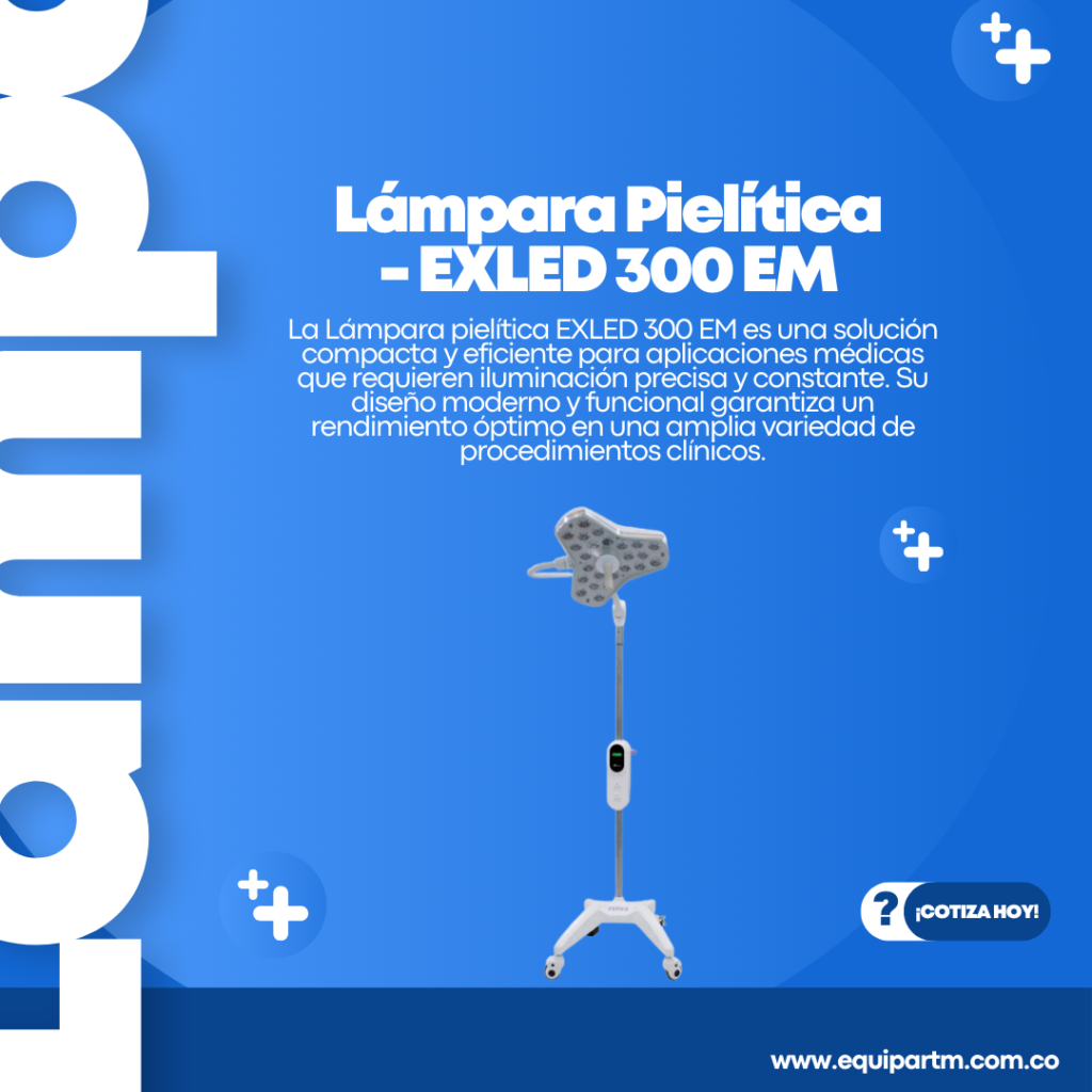 La Lámpara Pielítica EXLED 300 EM es una solución compacta y eficiente para aplicaciones médicas que requieren iluminación precisa y constante. Su diseño moderno y funcional garantiza un rendimiento óptimo en una amplia variedad de procedimientos clínicos.