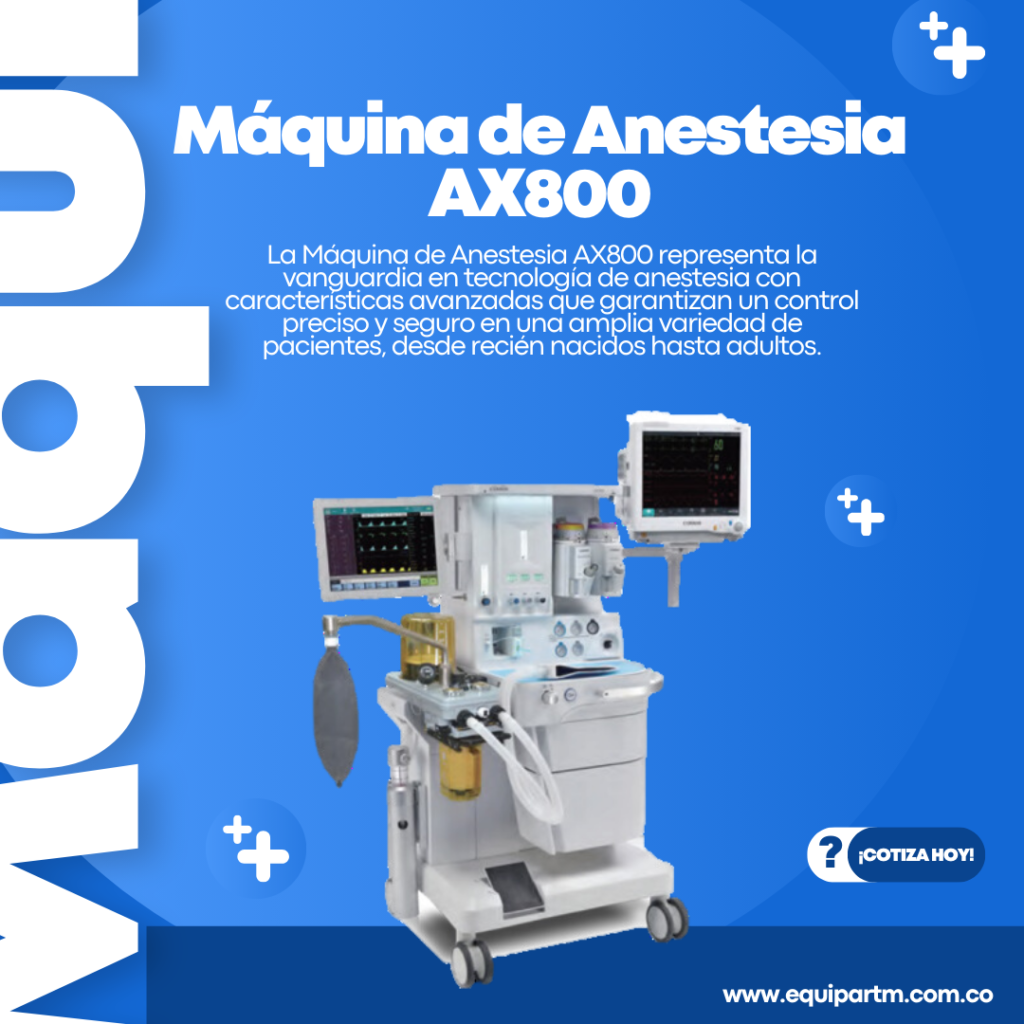 La Máquina de Anestesia AX800 representa la vanguardia en tecnología de anestesia con características avanzadas que garantizan un control preciso y seguro en una amplia variedad de pacientes, desde recién nacidos hasta adultos.