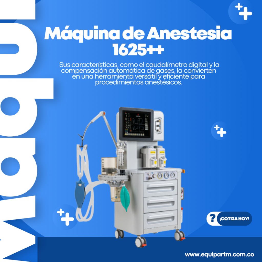 La Máquina de Anestesia 1625++ es un dispositivo avanzado con una pantalla táctil LCD de 17”, diseñada para ofrecer un control preciso en ventilación asistida y controlada.