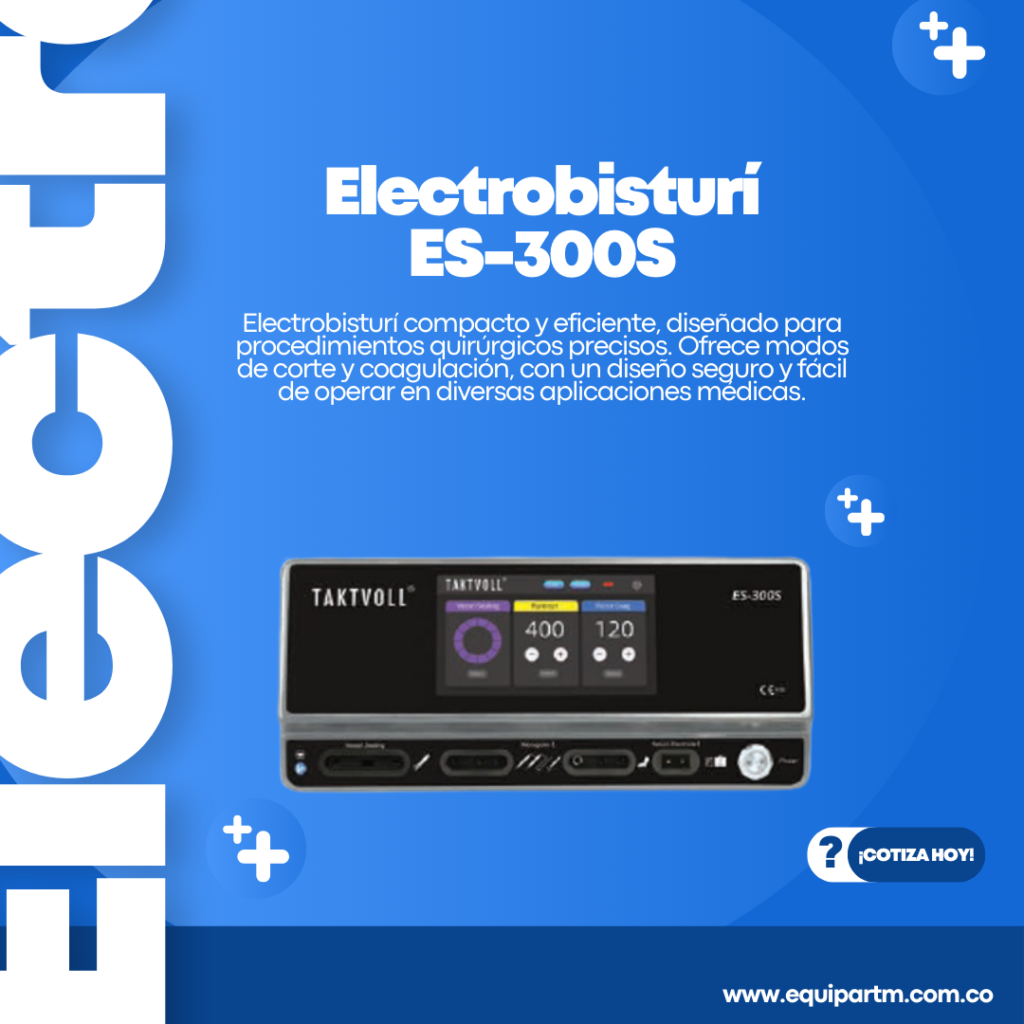 Electrobisturí compacto y eficiente, diseñado para procedimientos quirúrgicos precisos. Ofrece modos de corte y coagulación, con un diseño seguro y fácil de operar en diversas aplicaciones médicas.