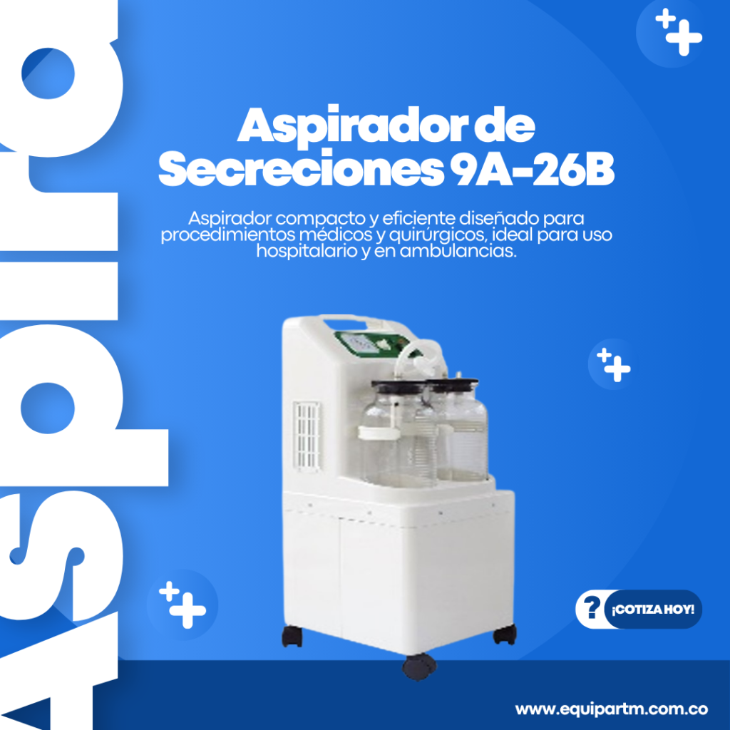 Aspirador médico diseñado para procedimientos quirúrgicos y clínicos, garantizando eficacia en la recolección de fluidos con un funcionamiento silencioso.