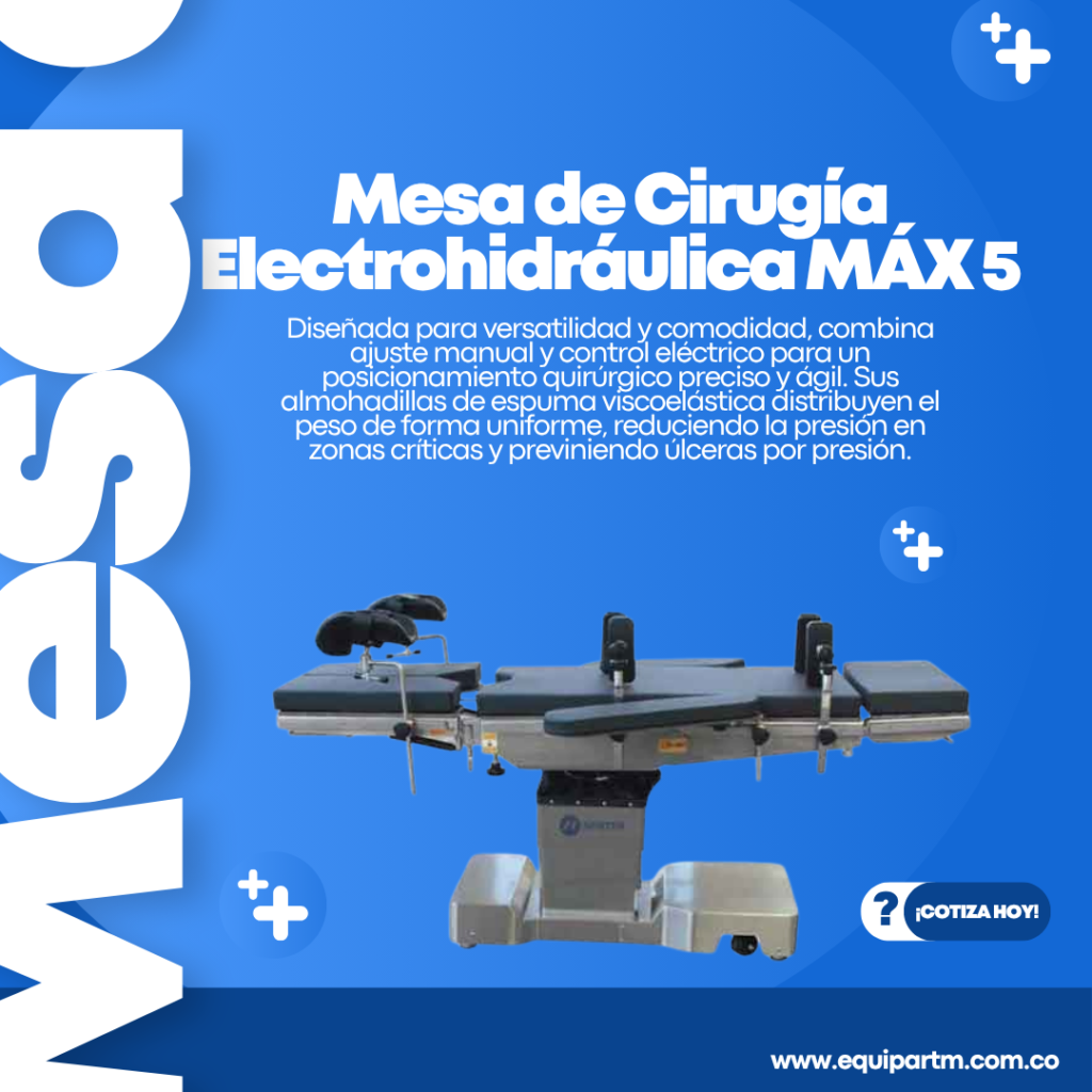 Las mesas de cirugía ofrecen soporte ergonómico y funcional para pacientes durante procedimientos quirúrgicos. Su diseño ajustable permite comodidad, seguridad y accesibilidad al equipo médico.