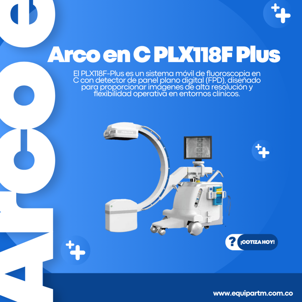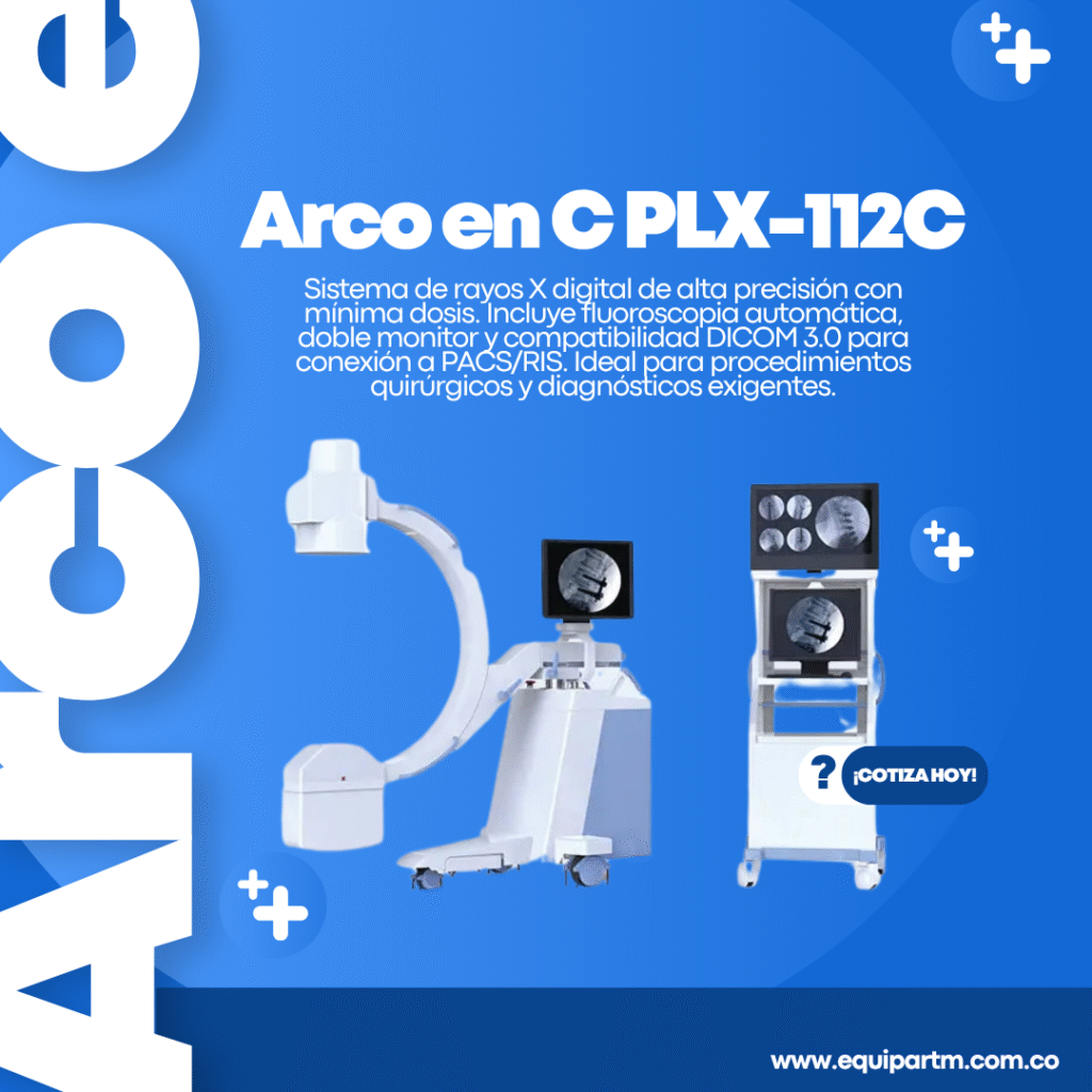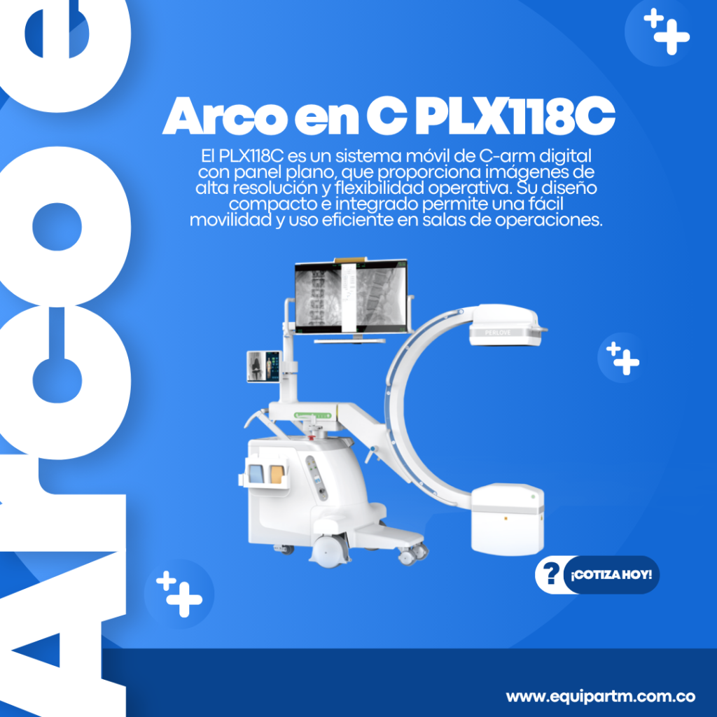El arco en C es un dispositivo de rayos X móvil que proporciona imágenes en tiempo real durante procedimientos quirúrgicos. Es esencial en traumatología, ortopedia, cardiología y cirugías mínimamente invasivas.