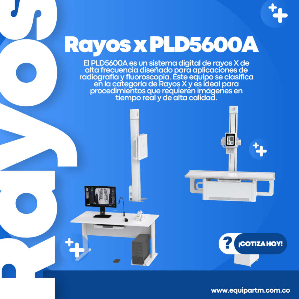 El PLD5600A es un sistema digital de rayos X de alta frecuencia diseñado para aplicaciones de radiografía y fluoroscopia. Este equipo se clasifica en la categoría de Rayos X y es ideal para procedimientos que requieren imágenes en tiempo real y de alta calidad.