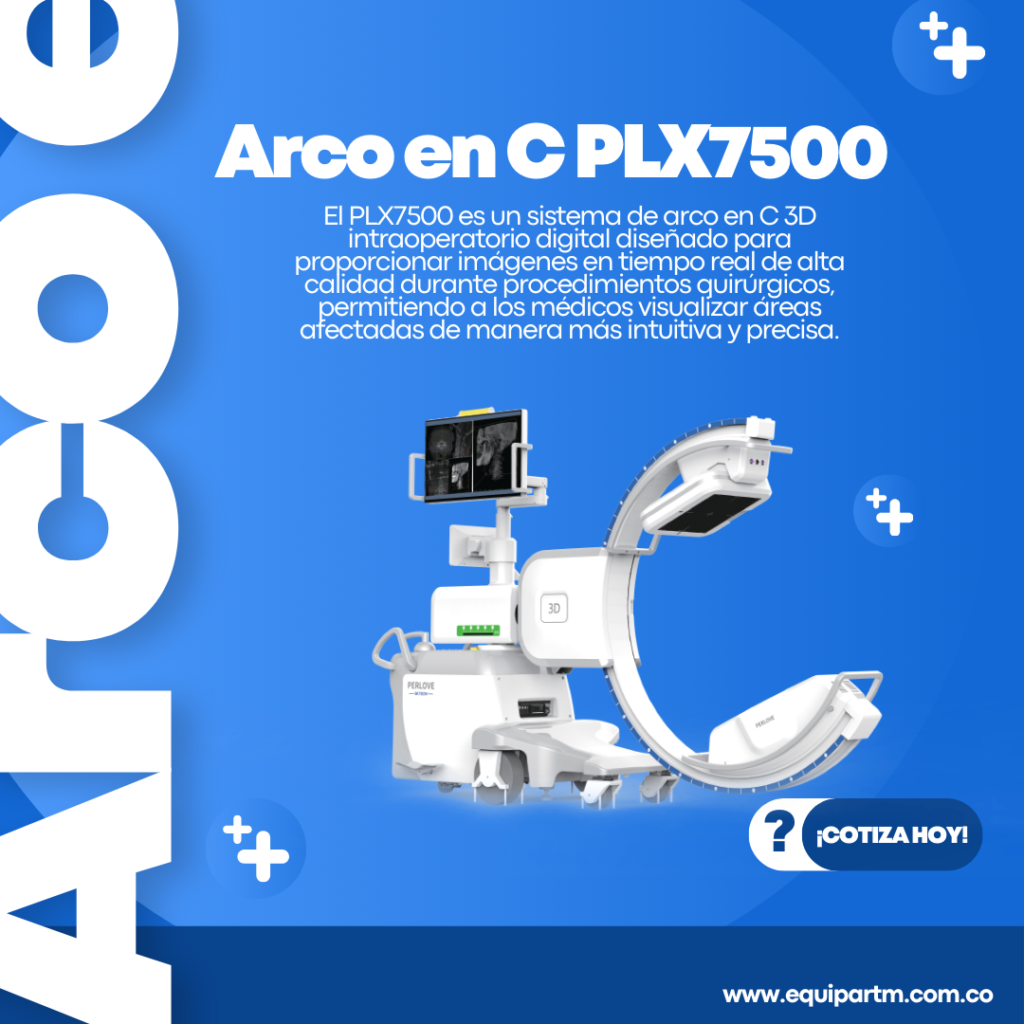 El PLX7500 es un sistema de arco en C 3D intraoperatorio digital diseñado para proporcionar imágenes en tiempo real de alta calidad durante procedimientos quirúrgicos, permitiendo a los médicos visualizar áreas afectadas de manera más intuitiva y precisa.