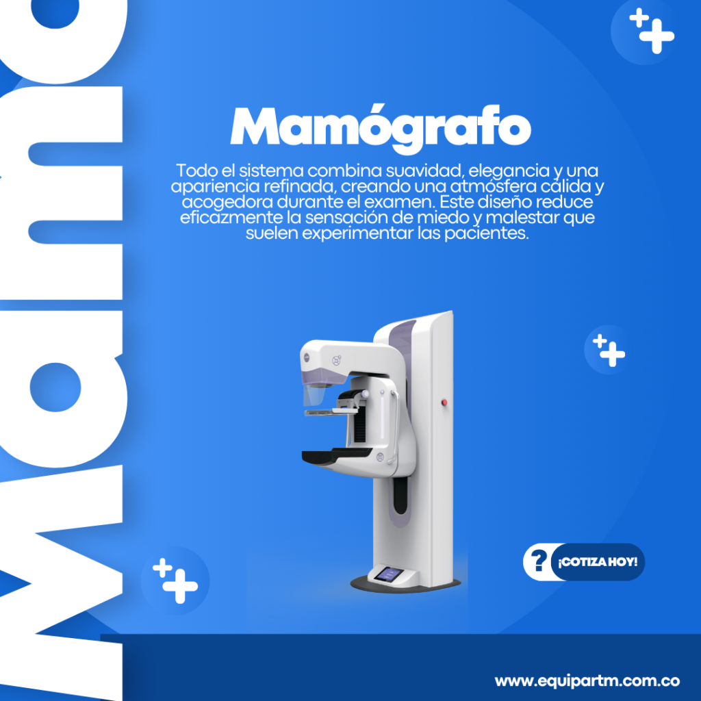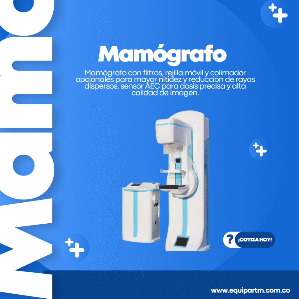 Los mamógrafos son equipos especializados en la detección temprana del cáncer de mama mediante imágenes de alta resolución. Permiten identificar microcalcificaciones y lesiones con gran precisión y confiabilidad.
