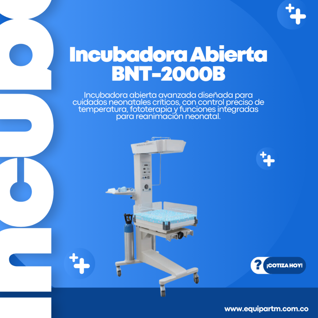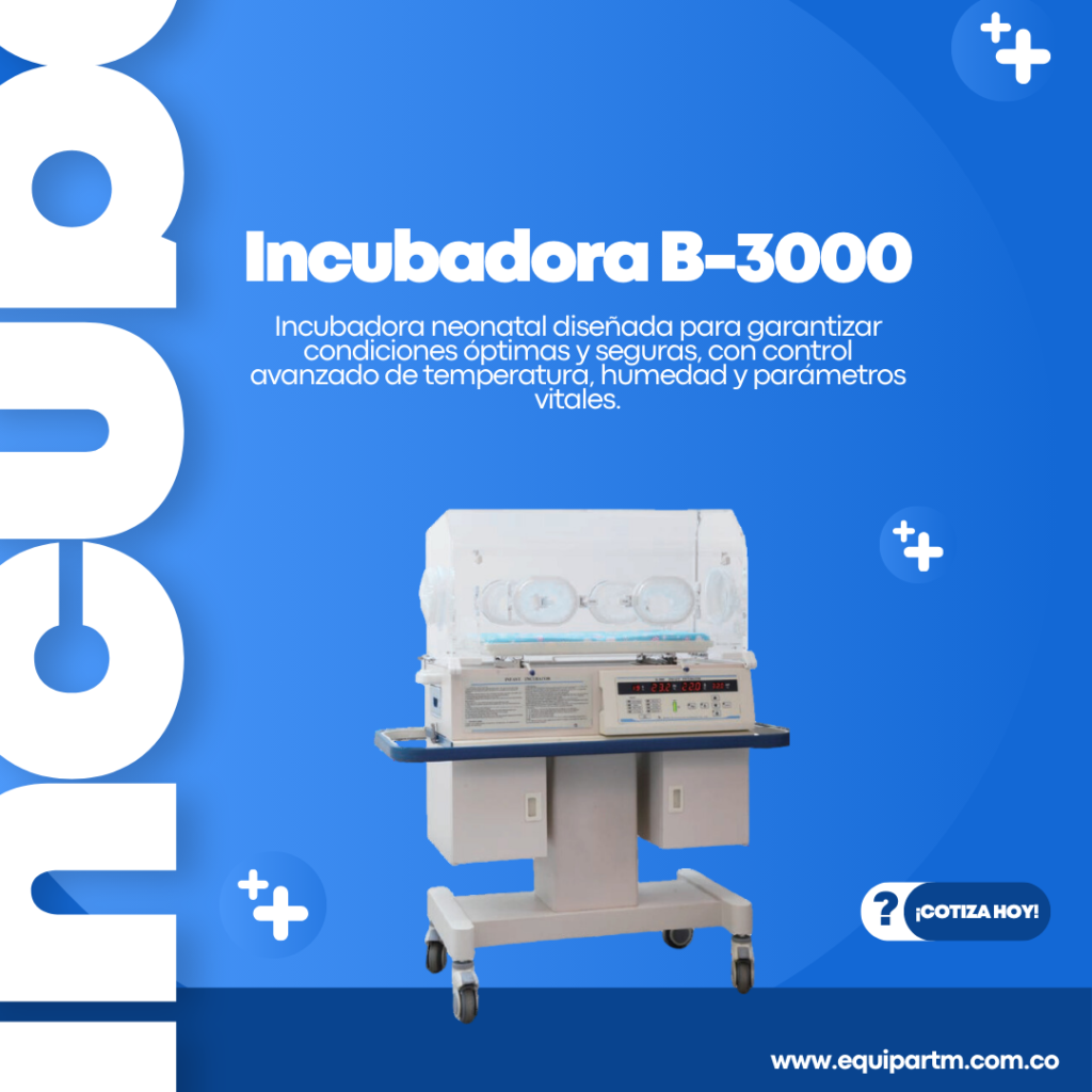 Incubadora neonatal diseñada para garantizar condiciones óptimas y seguras, con control avanzado de temperatura, humedad y parámetros vitales.