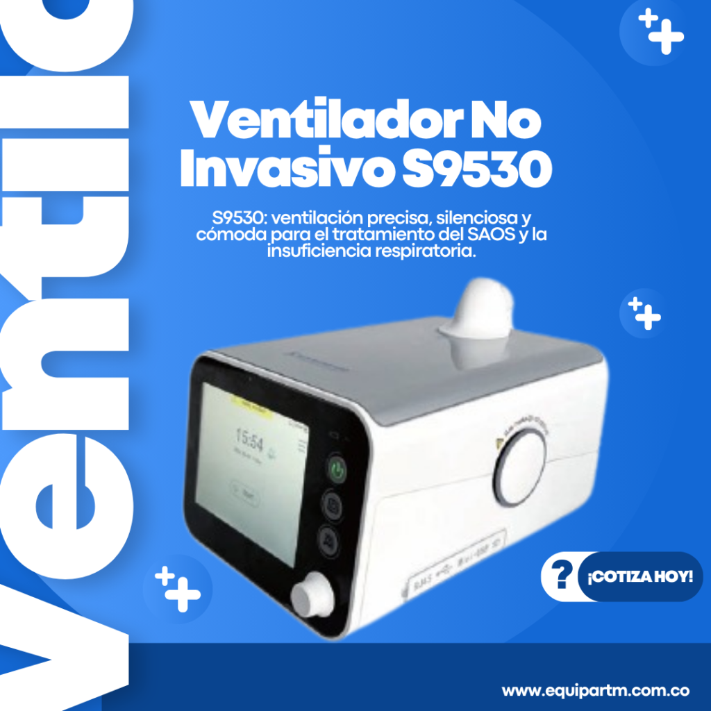 El ventilador no invasivo S9530 es una solución avanzada para pacientes adultos con apnea obstructiva del sueño (SAOS), ronquidos severos o insuficiencia respiratoria. Equipado con una pantalla LCD a color de 5,6 pulgadas, permite visualizar en tiempo real los parámetros respiratorios, formas de onda e información sobre alarmas.