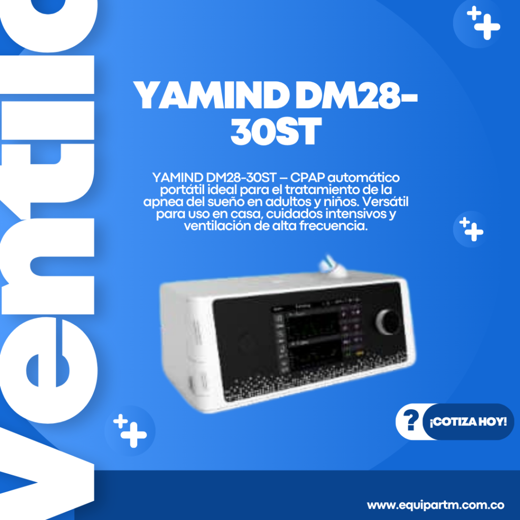 El YAMIND DM28-30ST es un dispositivo CPAP automático y portátil, diseñado para ofrecer una terapia eficaz en casos de apnea del sueño tanto en adultos como en niños. Su tecnología avanzada permite una ventilación precisa y segura, adaptándose a diferentes entornos clínicos, desde el hogar hasta unidades de cuidados intensivos.
